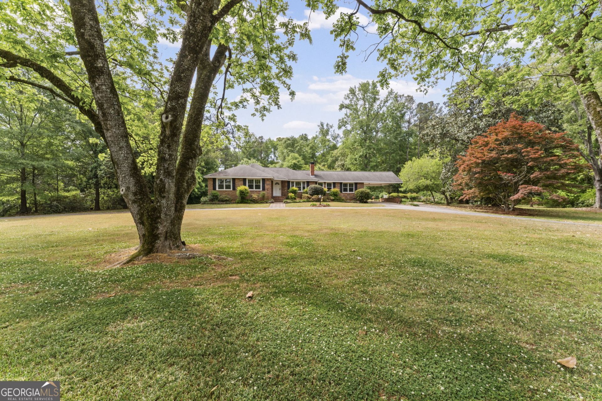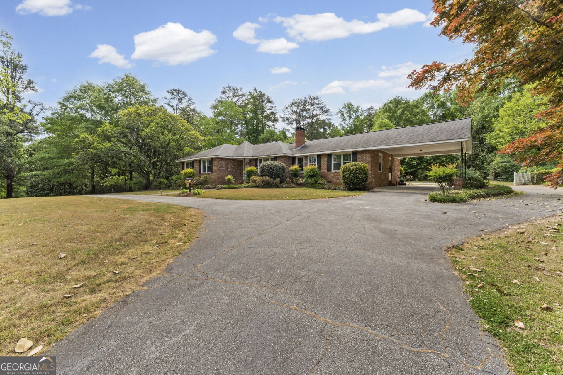 CHARMING 4-SIDED BRICK RANCH ON 5 ACRES! Welcome home to this beautifully maintained 4-sided brick ranch, perfectly situated on 5 peaceful acres with all the Southern Charm you've been looking for! The well-established yard is a true standout, featuring blooming daylilies and a cozy gazebo-perfect for family dinners before heading down to enjoy fishing in the shared pond. The backyard also includes a spacious pole barn, offering excellent storage for equipment, hobbies, or outdoor toys. A circular driveway adds both convenience and classic curb appeal. Inside, you'll find 3 bedrooms, 2 bathrooms, spacious kitchen wit a large island & breakfast bar, eat-in kitchen with abundant cabinet storage, solid surface countertops & updated tiled backsplash, open dining / living room combo is perfect for gatherings. This kitchen is truly a Cooks' Dream, designed with both function and style in mind. From the inviting layout to the thoughtful details throughout, this home is full of charm and has been lovingly cared for. Home is listed with 5 acres. A new survey with be completed at the seller's expense. Additional acreage available - option to purchase up to 12 acres total. Call for details.